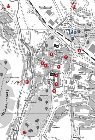 Die Stationen Bahnhof, Café Stang, Marktplatz, Heimatmuseum, Hotel Post, Schmiede, Abteikirche, Konventbau, Rossmann, Seegarten, Wolkmann, Amorsbrunn und Gotthard bezeichnen charakteristische Orte in Amorbach und Umgebung, die Theodor W. Adorno in seiner Kindheit gerne aufsuchte und darüber in seinem hier zitierten Text in dem Band Ohne Leitbild - Parva Aesthetica, 1967, edition suhrkamp berichtet hat. Auf der Webseite können Sie die einzelnen Punkte auf der Karte anklicken und kommen dann auf die jeweilige Seite mit gesprochenen und animierten Zitaten Adornos, historischen Fotos und Informationen zu dem Ort.