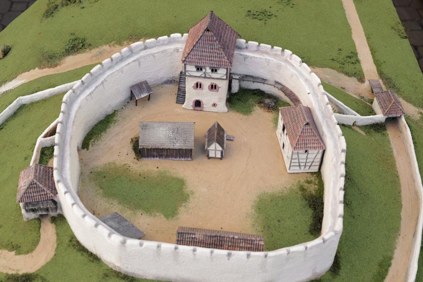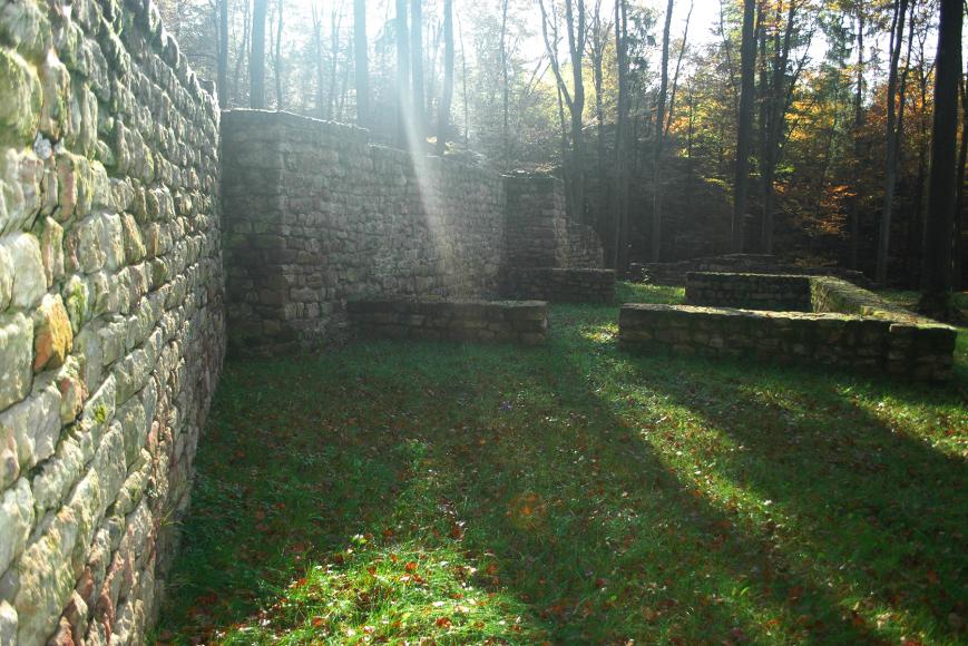 Um 1250 erhob sich eine mächtige Burg auf dem 'Schlossberg' östlich von Kleinwallstadt. Die Mauerstümpfe, Erdwälle und Gräben des Burgstalls hüllen sich bis heute jedoch in mystisches Schweigen, dem lediglich die Archäologie einige Geheimnisse entlocken konnte. Als die Befestigung Mitte des 13. Jahrhunderts erbaut wurde, war die Umgebung im Gegensatz zu heute nur schwach bewaldet, vielleicht sogar ganz waldfrei. Die hell verputzten Burgmauern müssen vom Maintal aus wie ein Leuchtturm zu sehen gewesen sein.