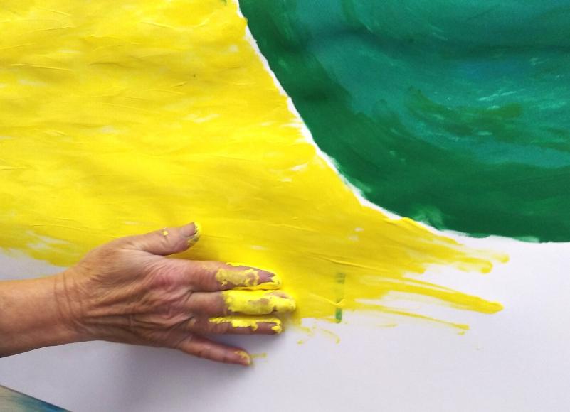 Das Begleitete Malen findet nicht im Sitzen, sondern in Bewegung statt und fördert durch das Auftragen der Farbe mit den Fingern bzw. Händen die Sinneswahrnehmung. Viele erleben diese spezielle Malmethode als wohltuende Entschleunigung und zugleich als Belebung. Das Gemalte wird nicht bewertet. So können die inneren kreativen Anteile zum Vorschein kommen. Die eigene Intuition, die im lauten Alltag oft untergeht, wird wahrnehmbar.