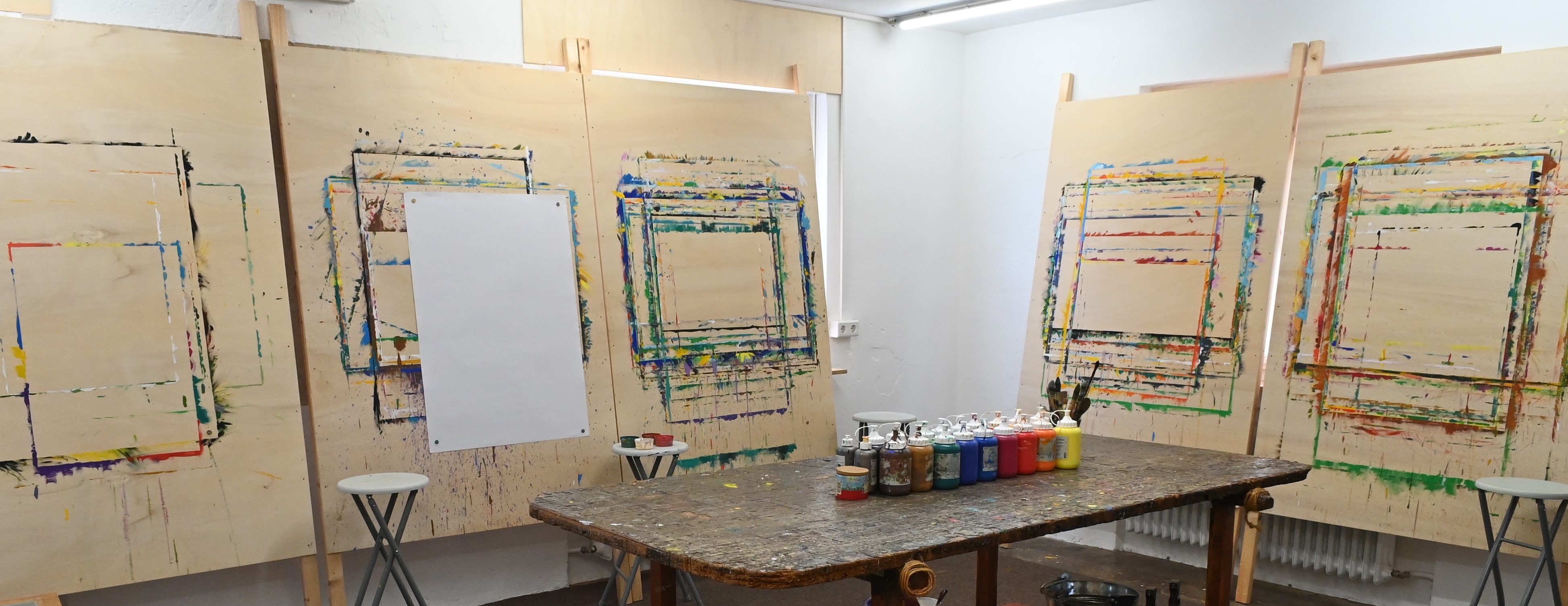 In der BildWerkstatt begleite ich regelmäßig kleine Gruppen von Malenden. Das Setting geht im Ursprung auf Arno Stern zurück, die Art der Malbegleitung wurde von der Schweizerin Bettina Egger weiterentwickelt und wird in Deutschland u.a. von Alfred Niedecken gelehrt.