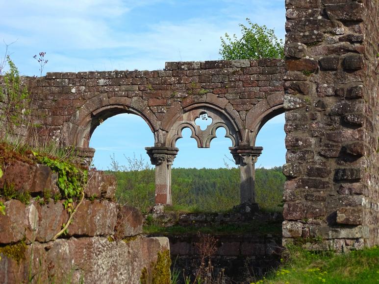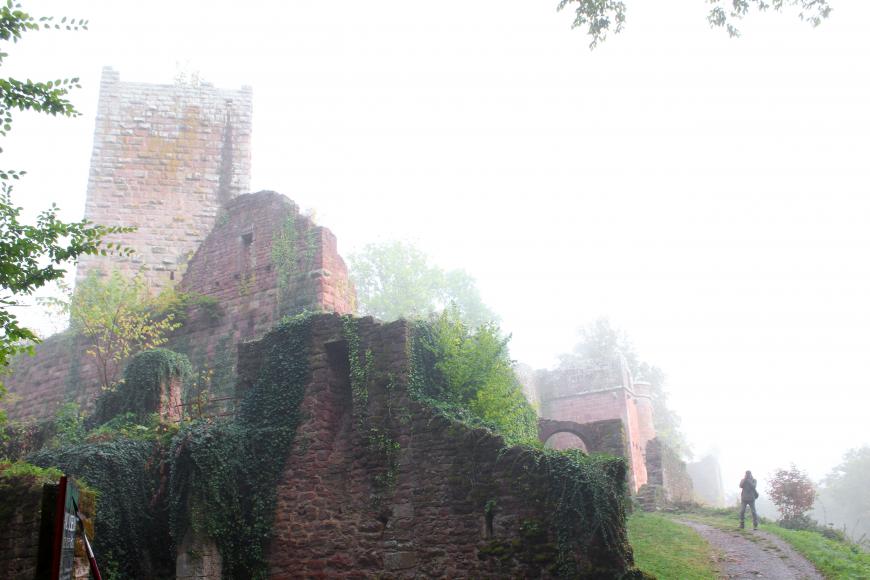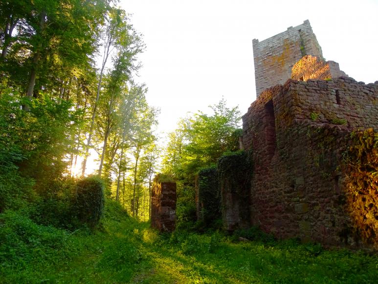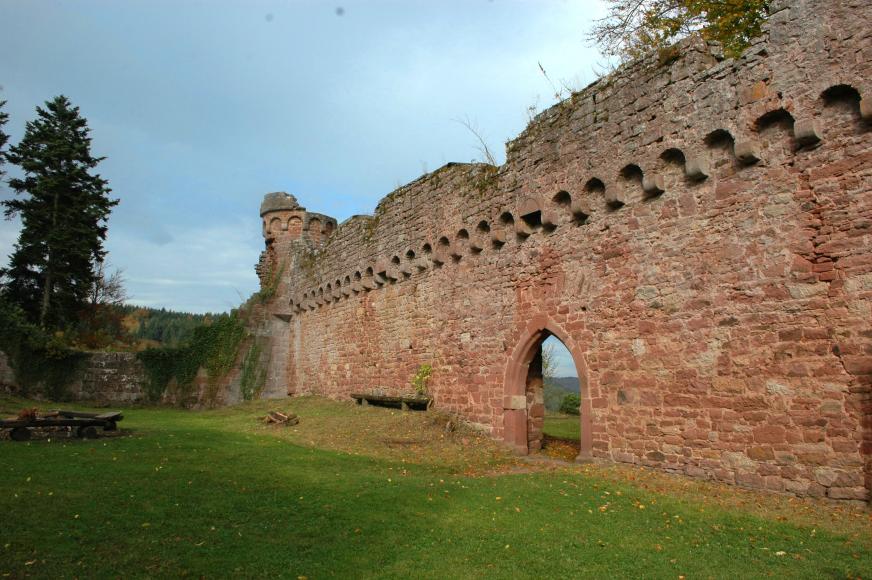Die ursprüngliche Einrichtung des Burginnern ist noch gut abzulesen. Der Bergfried schützte hinter Graben und Schildmauer die am meisten gefährdete Bergseite und zugleich die im Schatten der Burgmauer angeordneten Wohnräume.Der Torturm enthielt im Obergeschoss die dem Ritterheiligen Georg geweihte Kapelle. An der Talseite steht der Palas. In ihm lagen die repräsentativen Versammlungsräume, unten beheizbar und mit kleinen Fenstern der Raum für die Wintermonate, oben mit lichtspendenden Arkaden der Saal für sommerliche Feste.