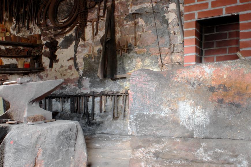 Der Schmied war aus der Dorfgemeinschaft nicht wegzudenken. Sämtliche eisernen Gerätschaften für Landwirtschaft, Verkehr, Gebäude, Handwerkzeuge, Küchen- und Handarbeitsutensilien wurden von ihm hergestellt und/oder repariert. In größeren Gemeinden hatten sich die Schmiede oft als Wagen- Huf-, Kessel-, Nagel oder Werkzeugschmied spezialisiert, in kleineren Gemeinden wurden alle diese Arbeiten vom Dorfschmied ausgeführt. In Dorfprozelten produzierte der Schmied neben landwirtschaftlichen Gerätschaften ab Mitte des 19. Jahrhunderts viele Werkzeuge für die florierende Sandsteinindustrie.