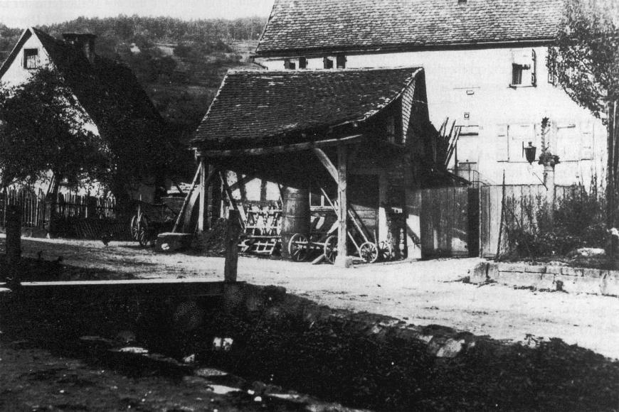 Mit an Sicherheit grenzender Wahrscheinlich handelt es sich bei der um 1550 erwähnten 'fabrica' um einen Vorgängerbau an der Stelle der heute noch erhaltenen Schmiede, die 1617 errichtet wurde. 1553 wird ein 'Schmieds Wassergraben' erwähnt. Damit kann nur der bis in die 1950er Jahre entlang der Steingasse verlaufende Entwässerungsgraben, der direkt an der Alten Schmiede vorbeiführte, gemeint sein.