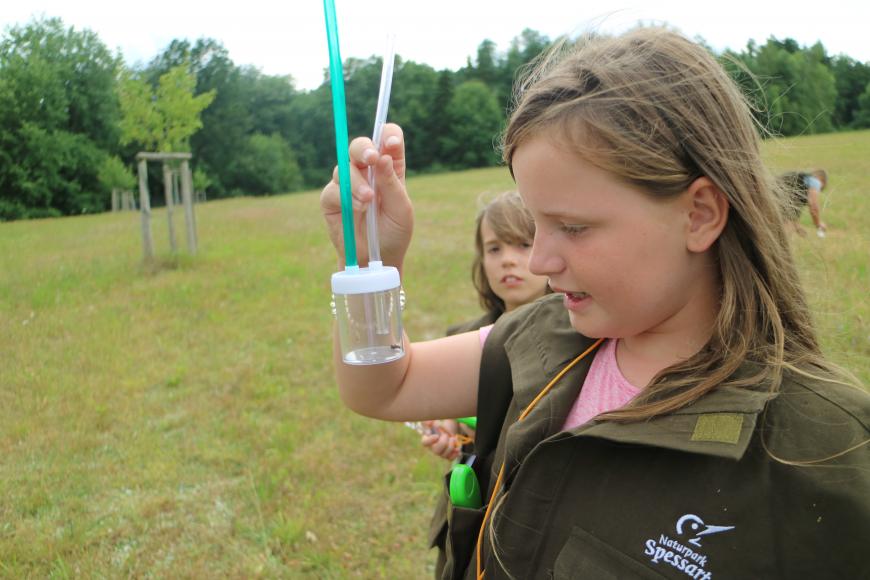 Die robusten Entdecker-Westen könnt ihr an verschiedenen Orten im Spessart ausleihen. In den zahlreichen Taschen der Weste findet ihr nützliche Dinge, die ihr bei euren Expeditionen in der Natur gut gebrauchen könnt – zum Beispiel eine Lupe, einen Kompass, ein Beobachtungsglas und sogar einen Insektensauger. Mit diesem könnt ihr kleine Tiere einfangen und in Ruhe aus nächster Nähe beobachten. Egal, ob ihr einen nahe gelegenen Bach erforschen wollt oder durch Wald und Wiese pirscht, mit den Entdecker-Westen seid ihr bestens ausgestattet.