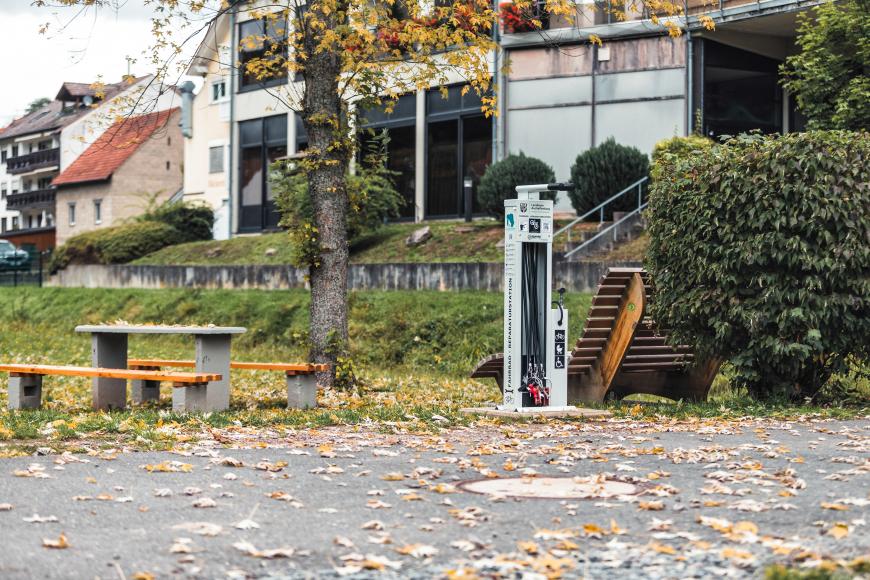 - Entlang der Strecke: mind. fünf E-Bike Ladestationen, zwei Fahrrad-Reparaturstationen und mehrere Holz-Wellenliegen