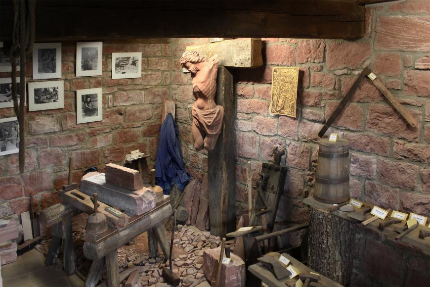 Im Untergeschoss des Museums ist eine vollständig ausgestattete Steinhauerwerkstatt als Dauerausstellung eingerichtet. Neben vielen aus Sandstein gefertigten Objekten, befindet sich als besonderes Ausstellungsstück auch der 'Herrgott vom Dreikreuz' hier. Der Torso einer Christusstatue gehört zu einer Kreuzgruppe aus dem Jahr 1629 , die an der Gemarkungsgrenze von Dorfprozelten und Stadtprozelten steht. Das stark beschädigte Original wurde durch eine Kopie ersetzt und zum Schutz vor weiterer Zerstörung ins Heimatmuseum gebracht. 2019 errichtete der Heimat- und Geschichtsverein im Außenbereich des Museums aus alten Materialien und möglichst originalgetreu eine Steinhauerhütte.