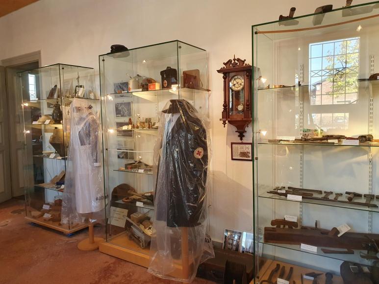 Im Erdgeschoss werden verschiedene Exponate zu den Themen Schule, Spielzeug, Apotheke oder Handwerk gezeigt. Darunter befinden sich beispielsweise Werkzeuge von Schustern oder ein alter Zahnarztbohrer, der noch mit dem Fuß betrieben werden muss. In den Vitrinen werden außerdem Medikamentenfläschchen oder Scherzkrüge. Außerdem wird der Küchenherd mit grüner Glasur der ehemals in Kleinheubach ansässigen der Eisengießerei L. Wetzler (später Fa. Ripperger/Fa.Hett) gezeigt.