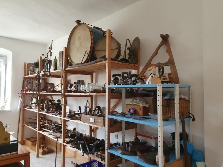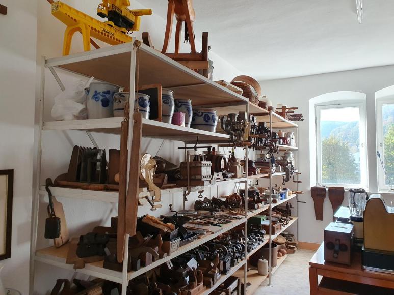 Im zweiten Obergeschoss werden allerlei Handwerker- und Haushaltsgeräte gezeigt. Darunter befinden sich beispielsweise Mühlen, Schlachtermesser und vieles mehr. Vor allem die heute nicht mehr genutzten Werkzeuge und deren Funktionen sind interessant. In der Ausstellung sind auch Keramikartikel aus der Anfangszeit der Firma Scheurich oder Flaschen der Brennerei Meer-Weymar zu sehen. Besonders ist hier ein Morsegerät aus dem Ersten Weltkrieg. Es verband vermutlich die Frontlinie mit den Kommandeuren und verfügt über einem aufdruckten Morsealphabet.
