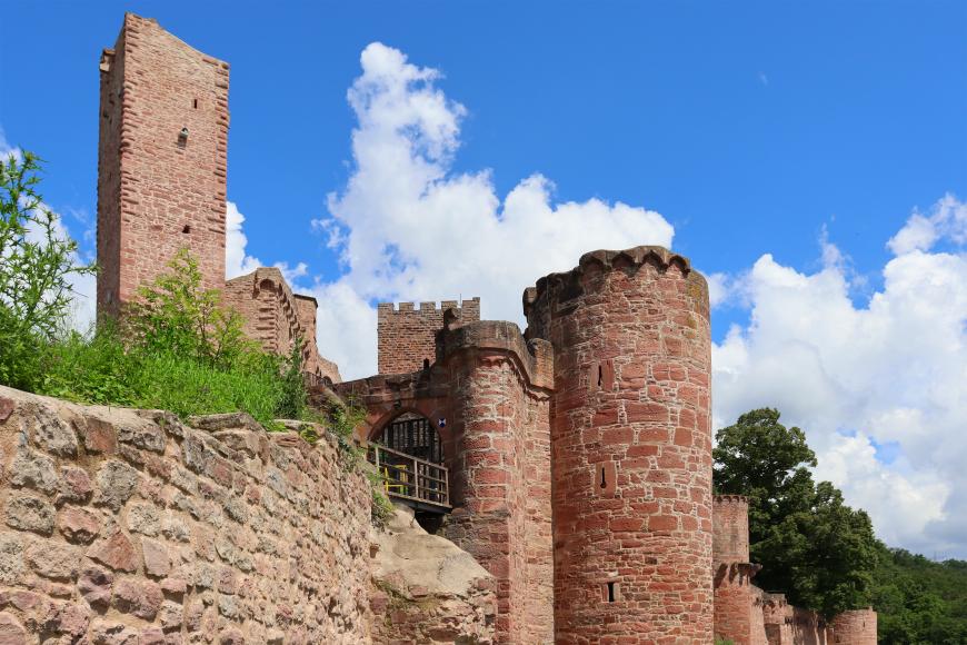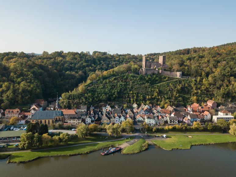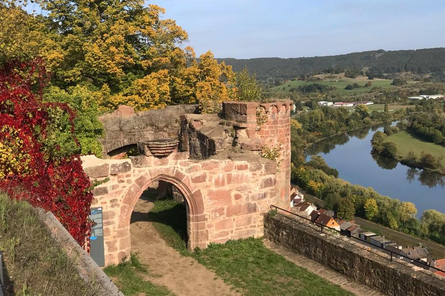 Rund 70 Meter über der Stadt Stadtprozelten thront eine der größten Burgruinen Bayerns. Ihre zwei Bergfriede und die leuchtend roten Sandsteinmauern verleihen der jüngst generalsanierten Henneburg eine der eindrucksvollsten Silhouetten entlang des Mains. Für einen Besuch ist sie dank des örtlichen Führungsangebots, mehrerer Informationstafeln und Faltblättern für Erwachsene wie auch für Kinder hervorragend geeignet.