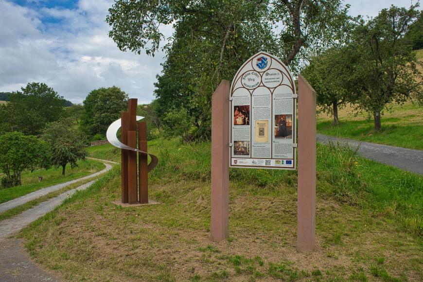 An den nächsten beiden Stationen erhält man Informationen zur Geschichte von Mespelbrunn und Hessenthal im 16. Jahrhundert sowie der Gründung der Universität Würzburg im Jahr 1582. Außerdem steht dort das Kunstwerk „Ausblick“ von Stefan Kempf mit tollem Blick auf das Elsavatal.