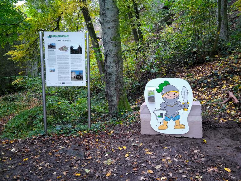 Vom Maintal aus gut sichtbar erhebt sich auf einem Bergsporn zwischen den Ortschaften Collenberg und Dorfprozelten rund 50 m über dem Fluss die imposante Ruine der Kollenburg. Ihre Ursprünge liegen im Dunkeln. Der Burgname selbst leitet sich von „Kolbo“ ab, einem Beinamen der Reichsschenken von Schüpf. In ihrem Familienwappen ist ein Streitkolben enthalten, der auch ins Gemeindewappen Collenbergs Eingang gefunden hat.