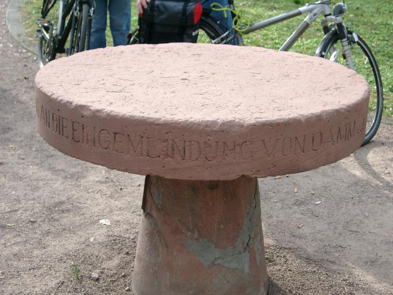 Hier stand die Herrenmühle, die älteste Dämmer Mühle aus dem 12. Jahrhundert. Ab 1827 produzierte in den Gebäuden die bekannte Dämmer Steingutfabrik, die unter dem Leiter Daniel Ernst Müller in den 1830/40er Jahren ihre Blüte erlebte. In der Zeit der Industrialisierung entwickelten sich aus den zahlreichen Mühlen entlang des Baches Firmen und Betriebe. Mit seiner verkehrsgünstigen Lage wurde Damm im 19. Jahrhundert zu einem pulsierenden Gewerbestandort.