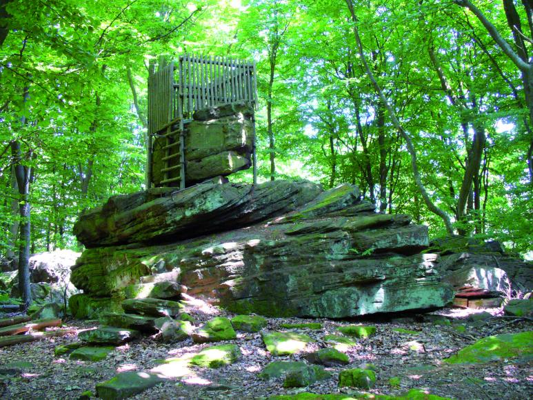 Steil ansteigend geht es nun bergauf in den Wald zum Eselsweg. Die Stationen Saustall, Ospis und Hunnenstein vermitteln das Bild einer seit vielen tausend Jahren genutzten Kulturlandschaft. Eine Brunnenanlage des 18. Jahrhunderts ist der Pfaffenbrunnen, der auf dem Weg zum Kloster Engelberg liegt. Die dortige Kirche und Schänke sind vielbesucht. Wir erschließen Ihnen die Kulturlandschaft um das Klosterareal. Den Abschluss bildet der Abstieg über die 612 Engelsstaffeln zurück ins Dorf - die längste Außentreppenanlage in Bayern und die zweitlängste in Deutschland.