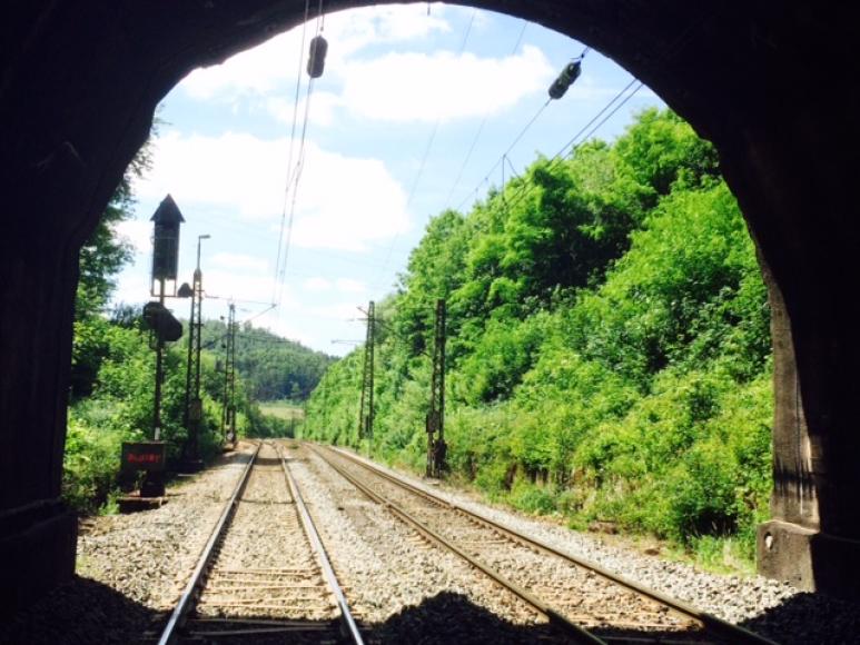 Mit der Eröffnung der »Ludwigs-Westbahn« im Oktober 1854 wendete sich für die beiden Gemeinden vieles zum Guten. Sie erhielten Anschluss an die große Welt und sie nutzten diese Chance. Für die Einwohner beider Orte war der Bahnbau die erste Verbesserung ihrer Lebensverhältnisse, denn hier boten sich vor Ort neue Arbeitsplätze. Lohn und Brot versprach die Bahn aber auch durch die Verbindung zu den Fabriken nach Aschaffenburg oder Frankfurt. Für die Firma Düker und andere Betriebe brachte der Bahntransport einen enormen Standortvorteil, denn Rohstoffe und Produkte konnten nun wesentlich günstiger transportiert werden. Ebenso profitierte Heigenbrücken nun vom Transport von Grubenholz ins Ruhrgebiet und von einheimischem roten Buntsandstein zu den Baustellen im Frankfurter Raum. In der Landschaft fallen die Bahnlinie und besonders die damit verbundenen Tunnelbauten ins Auge. 2017 wurde der 1854 eröffnete Schwarzkopftunnel geschlossen und eine komplett neue Trasse durch den Spessart-Hauptkamm gebohrt. Entlang des Weges erfahren Sie von den Umwälzungen, die mit der Eisenbahn im Lohrbach und Laufachtal verbunden sind.