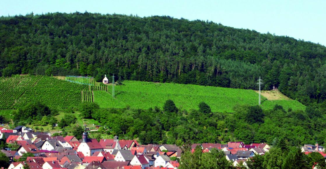 Weiter geht es sacht bergan in die Rücker Weinberge, von wo ein schöner Blick über das Elsavatal reicht. Unten in Rück liegen die Kirche und die „Mautstation“ als letzte Stationen vor Erreichen des Startpunktes am ehemaligen Bahnhof.