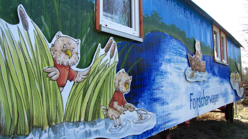 Der Naturerlebnisgarten lädt ein, die Natur mit allen Sinnen zu erfahren. Es gibt zahlreiche Orte zum Entdecken und Erforschen, wie beispielsweise das Außenlabor im beheizbaren Forscherwagen, die Magerwiese mit seltenen Pflanzen und Insekten oder die Bäume des Jahres Allee. Darüber hinaus gibt es einen Bio-Sinnesgarten mit einem Kräuter-Duftrondell und Wildkräuter zum Naschen. Außerdem gibt es Orte zum Entspannen und Spielen wie zum Beispiel der geschützte Pavillion zum Basteln, der Wasserspielplatz oder der Lehmbackofen.