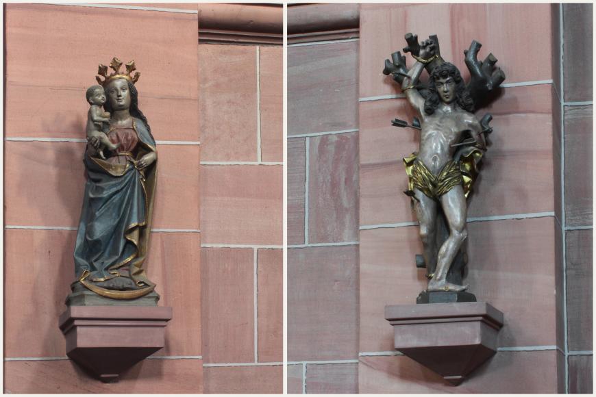 - Das Muttergottesbildnis 'Maria mit dem Kind' am rechten Vierungspfeiler im Mittelschiff datiert um 1480.