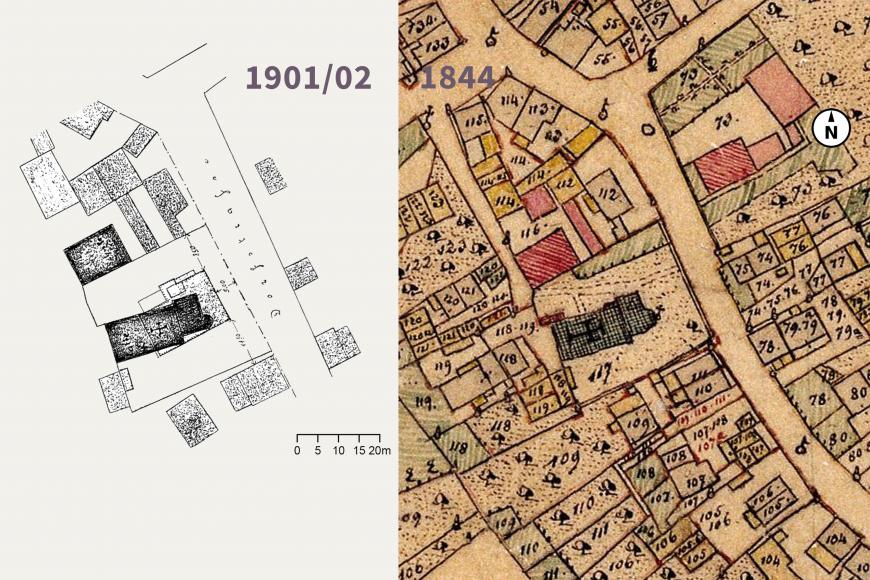 Glücklicherweise geben uns zwei Fotografien und ein Lageplan, die zwischen 1890 und 1901, also kurz vor ihrem Abriss angefertigt wurden, eine deutlich genauere Vorstellung von der zweiten Kirche. Hinzu kommt das Bayerische Urkataster, welches in Dorfprozelten 1844 angefertigt wurde.