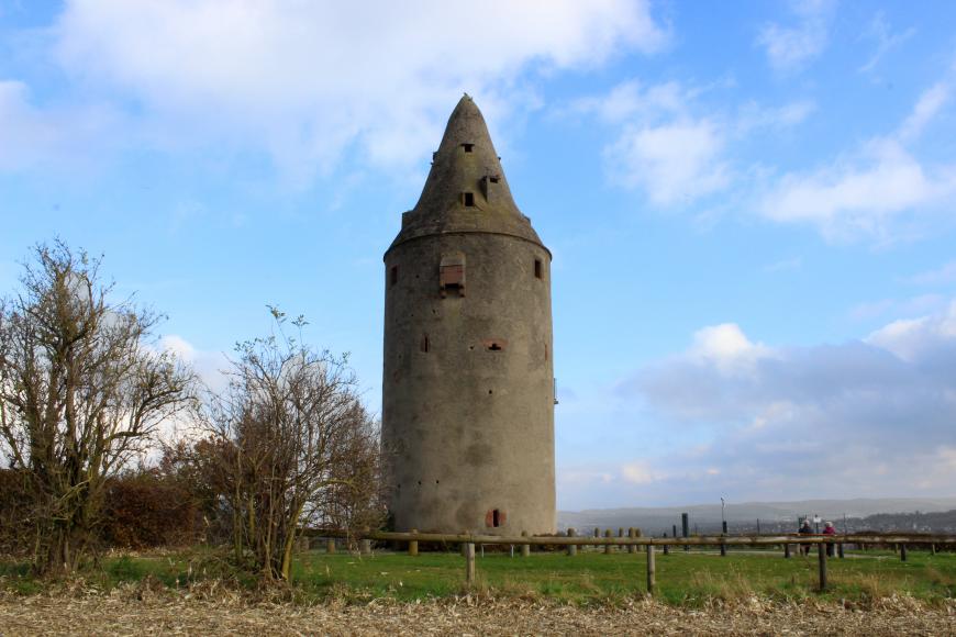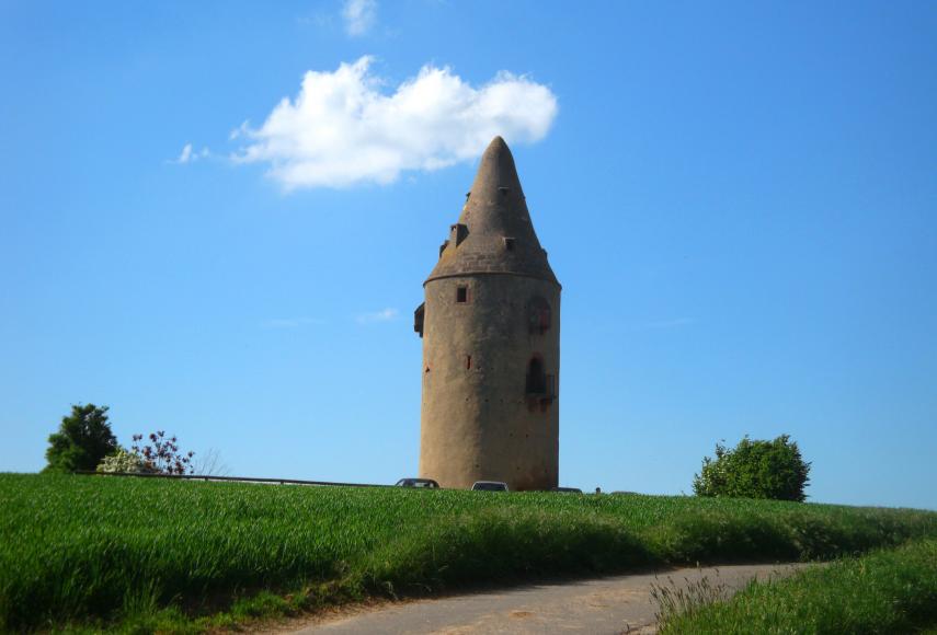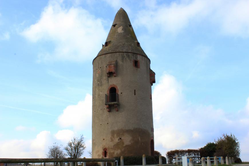 Der 22 Meter hohe Aussichtsturm an der bayerisch-hessischen Grenze bietet seit über 500 Jahren einen grandiosen Blick über den Bachgau. Ursprünglich diente er dem Kurfürstentum Mainz zur Überwachung der Grenze zur Grafschaft Hanau. Hier kreuzte der sogenannte Schiffweg die von Stockstadt bis Mömlingen verlaufende Landwehr, von der heute so gut wie nichts mehr erkennbar ist. Der Rundumblick ist dagegen geblieben.