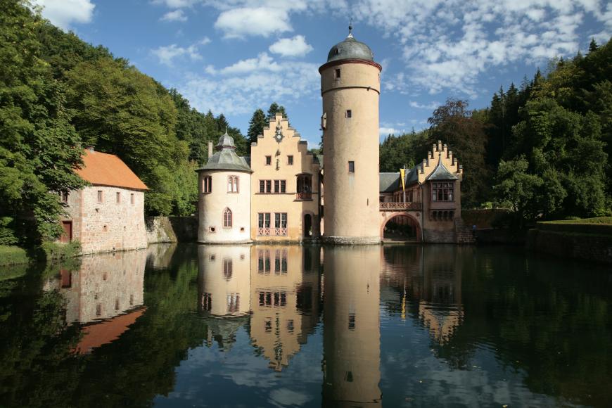 Versteckt in einem verschwiegenen Spessarttal liegt das Wasserschloss Mespelbrunn. Es ist im Renaissancestil erbaut und feierte 2012 sein 600-jähriges Jubiläum. Unter anderem als Drehort des Filmes „Das Wirtshaus im Spessart“ mit Liselotte Pulver und Carlos Thompson sowie als Schauplatz für das gleichnamige Theaterstück wurde es bekannt. Aufgrund seiner versteckten Lage überstand das Schloss alle Kriege unbeschadet und ist in seiner ursprünglichen Form erhalten geblieben.