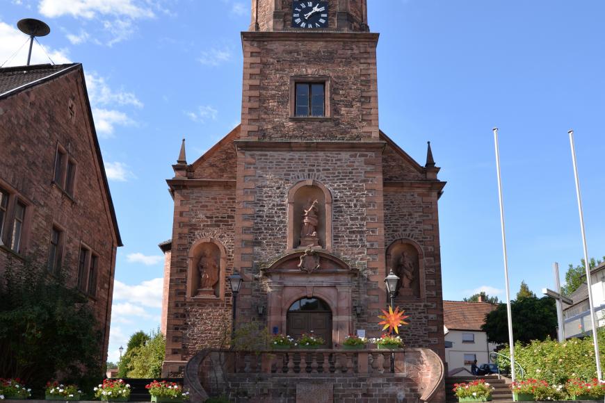 Ein Gotteshaus mit bewegter Geschichte: mittelalterliche Wehrkirche - barocker Neubau - Erweiterung in den 1950er Jahren - Blitzschlag - Wiederaufbau. Von dem einst befestigten Kirchhof zeugen Reste der ehemaligen Ringmauer mit Wehrgang und Schießscharten. Seit dem 18. Jahrhundert liegen nicht Chor und Altar im Osten, sondern Turm und Eingangsportal. Das Gebäude ist genau anders herum ausgerichtet als es üblich war und ist.