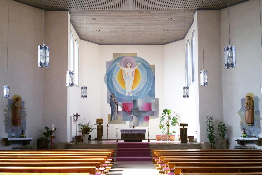 - 1950/51: Der westliche Teil der barocken Kirche, bestehend aus dem eingezogenen, außen polygonalen und innen halbrunden Chor und den daran anschließenden Langhausjochen, wird abgerissen und durch ein größeres Kirchenschiff in Form eines verlängerten Achtecks sowie einen eingezogenen, polygonalen Chor mit Sakristei ersetzt.