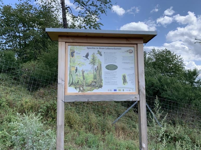 Der Naturlehrpfad vermittelt dir Wissen rund um das Thema Lebensraum Wald. Entlang der Wegstrecke von ca. 1,5 Kilometern Länge findest du 10 Stationen mit Informationstafeln. Die Themen dieser Tafeln reichen von Informationen rund um das Thema Rotwild über Sing- und Greifvögel bis hin zu Medizin aus der Natur. Außerdem hast du die Möglichkeit, entlang der Weinberg, an einzelnen Baumtafeln über die vorkommenden Baumarten des heimischen Waldes zu informieren.